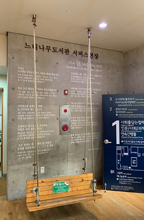 먼저 물리적 공간이란 아이들이 언제든지 갈 수 있는 위치에 있으면서, 이용자로서 아이들을 고려하여 공간을 구성하는 것을 의미한다. 경기도 용인에 있는 느티나무도서관은 주택 밀집 지역에 있으면서 아파트들과도 인접한 공원 옆에 자리 잡고 있다. 아이들은 학교를 오가며, 공원에 가다 도서관에 들를 수 있다. 문을 열고 들어가면 아이들을 배려한 공간들이 많은데, 예를 들면 만화책을 볼 수 있는 다락방은 아이들이 책에 대한 큰 부담 없이 도서관 문을 열게 하는 마중물이 되어준다. 이처럼 아이들만을 위한 공간은 아니지만 아이들도 편하게 느낄 수 있는 공간이 얼마나 고려되어 있는지를 물리적 공간에서 살펴보고자 한다.