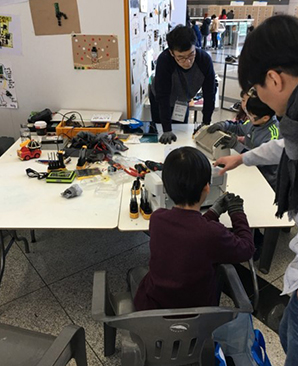 마지막으로 사람은 공간에서 아이들이 만나게 될 공간의 운영자들을 말한다. 아이들을 통제의 대상이 아닌 경험의 주체로서 존중하며 가르치기보다 아이들을 도와주는 제3의 어른들의 존재가 중요하다. 예를 들면 국립과천과학관에서 열렸던 《물건 뜯어보기 체험전》(2019.1.15.~1.27.)에서 만난 현장 스태프들은 아이들에게 세세하게 가이드를 주기보다 시범을 보여주고 아이들이 직접 분해 조합을 해보는 것을 지켜보고 기다려주었다. 아이들이 도움을 요청할 때만 어려운 부분을 도와주며 아이들이 스스로 그 경험을 시작하고 완성할 수 있도록 도움을 주는 어른들이었다.